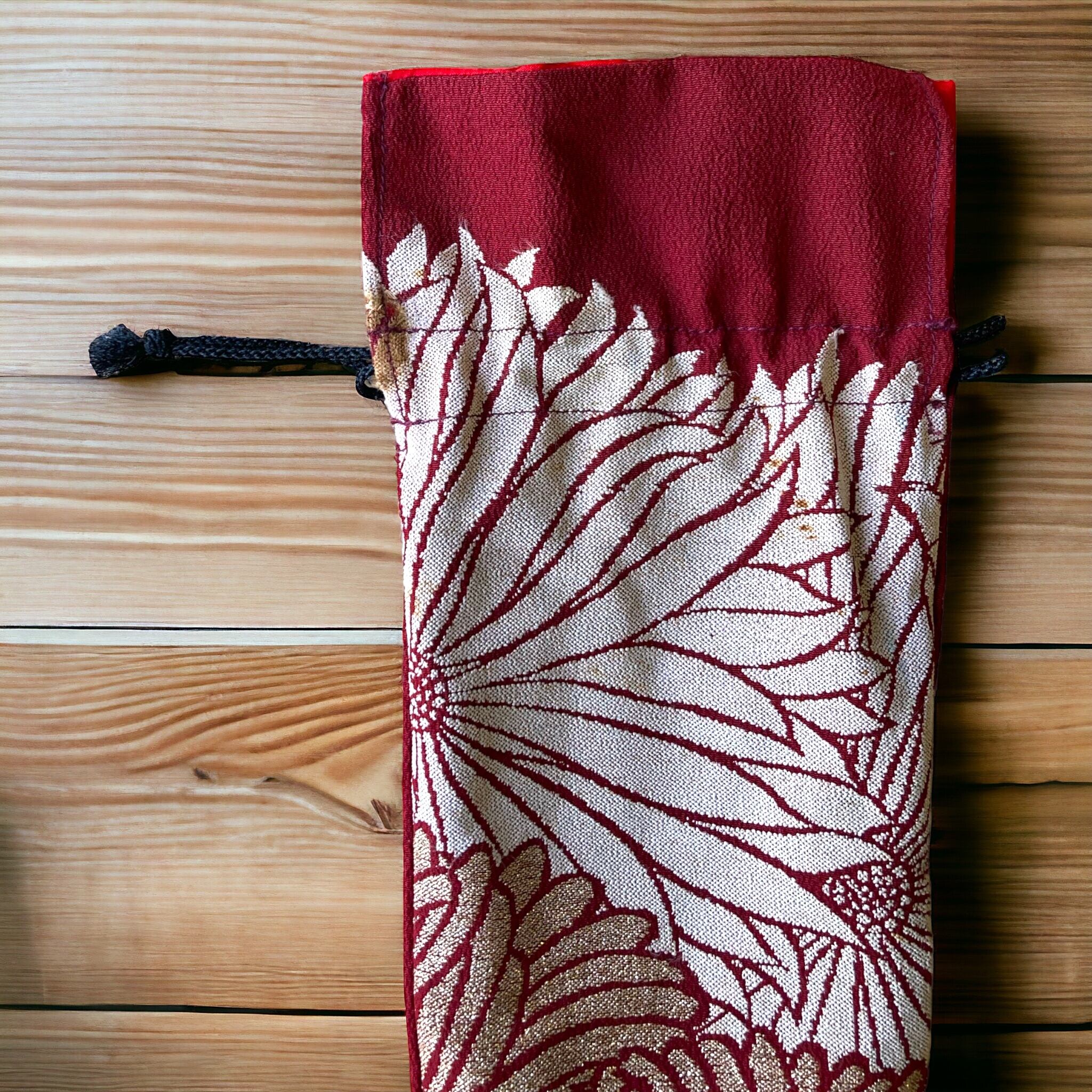 着物リメイク 日傘 金 白 黒 エンジ 花柄 菊 傘袋付 訳あり